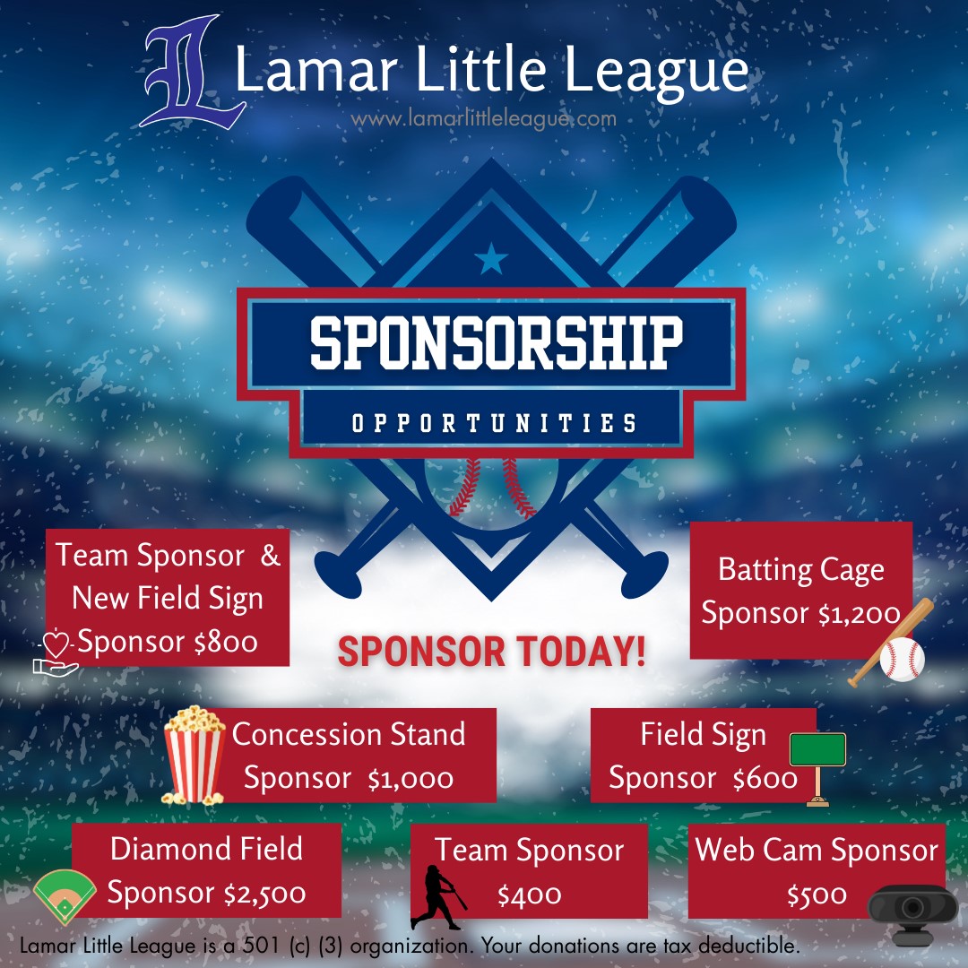 Thank you for considering a sponsorship and/or donation to Lamar Little League!